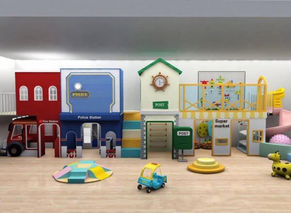 Our mini houses feature a modular design, allowing for flexible assembly and customization based on site size and preferred themes. We can deliver within 10-15 days, saving you time.We use high-quality and environmentally friendly materials, with a stable structure and rounded edges to ensure comprehensive child safety. We have obtained relevant safety certifications. Whether it’s a large-scale amusement park in a shopping mall, a community center, or a Kids Café, it can extend children’s play time and encourage repeat purchases.For more information on design and shipping, please contact us.