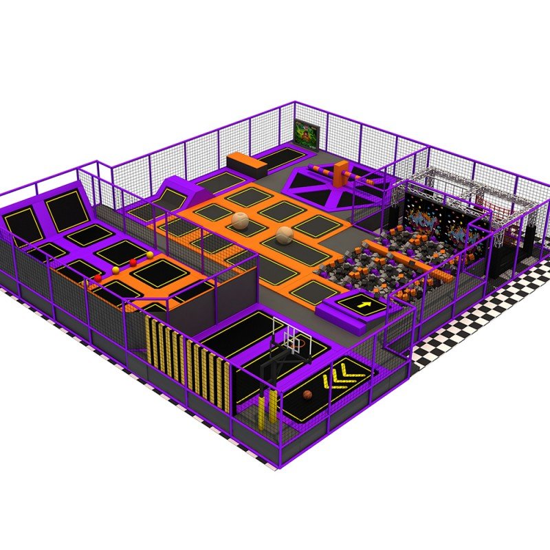 This commercial trampoline park solution offers multiple revenue streams within a single facility. The basketball zone attracts sports enthusiasts, while the ball pit appeals to younger children, and climbing elements engage adventure seekers. Each activity zone represents a potential pricing tier or package option. The layout maximizes space utilization with strategic walkways and viewing areas, allowing for efficient staff supervision and easy maintenance access. Designed for high throughput and repeat business, the facility includes durable commercial-grade materials that withstand heavy usage. The investment includes comprehensive operational guidelines, marketing templates, and maintenance protocols to ensure smooth business operations and consistent revenue generation.