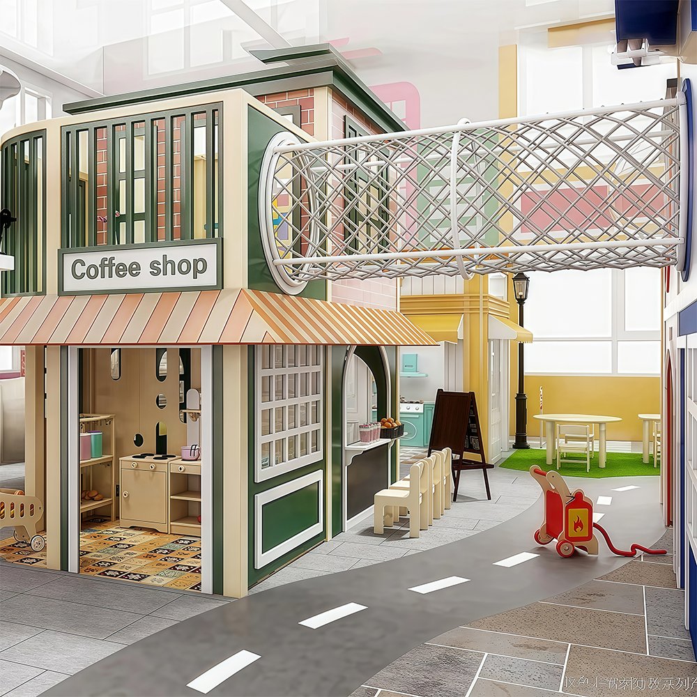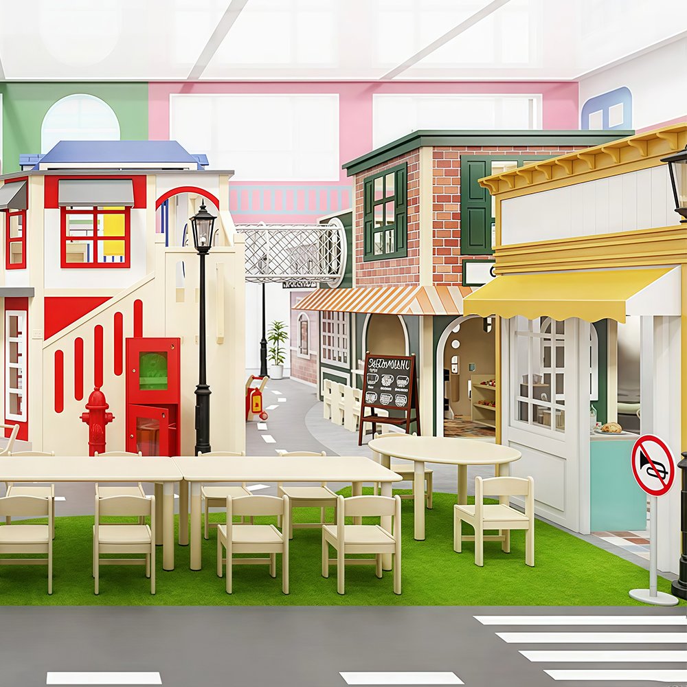 Kindergartens and early childhood education institutions integrate “life cognition, social rules, and career enlightenment” into their learning environments—learning math calculations in the “Mini Supermarket,” understanding safety rules in the “Traffic Scene,” and cultivating empathy in the “Hospital Scene,” turning abstract knowledge into concrete play.Our Mini City Playroom equipment is designed to meet the developmental characteristics of children aged 0-6, with rounded corners and a height that adapts to children’s height. For educational institutions seeking to enhance their teaching characteristics, Mini City is an excellent choice.